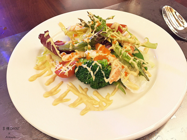 ▲ 前菜-溫蔬菜蝦仁沙拉