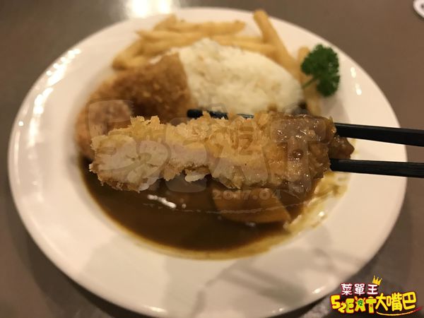 ▲雖然馬鈴薯綿密,不過總是覺得哪裡怪怪的…加了薯條的咖哩豬排飯有點「台式化」了,不過入境隨俗是必須的,就像是港市凍檸茶中的黃色萊姆,到了台灣就變成了綠色的檸檬了。