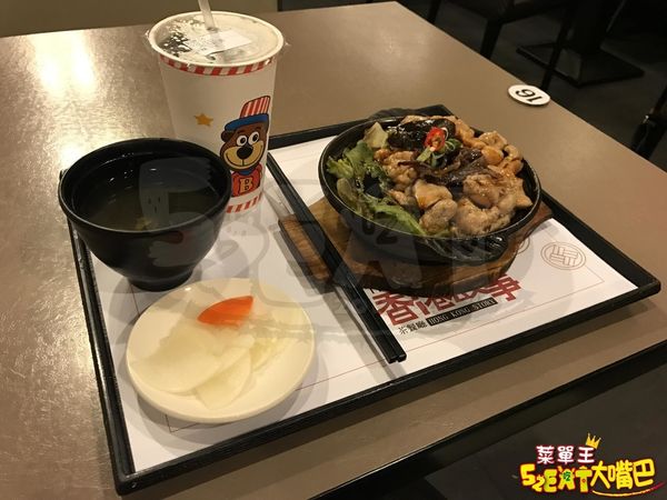 ▲北菇滑雞嫩煲仔飯/NT.180元,煲仔飯其實就是鍋飯,通常廚師用炭爐把砂鍋內的飯先煮熟,再放上和食材用炭火慢慢地蒸熟,不過現在為了省時間,很多都不再是傳統的做法了。配上飲料與一碗例湯、一碟小菜。