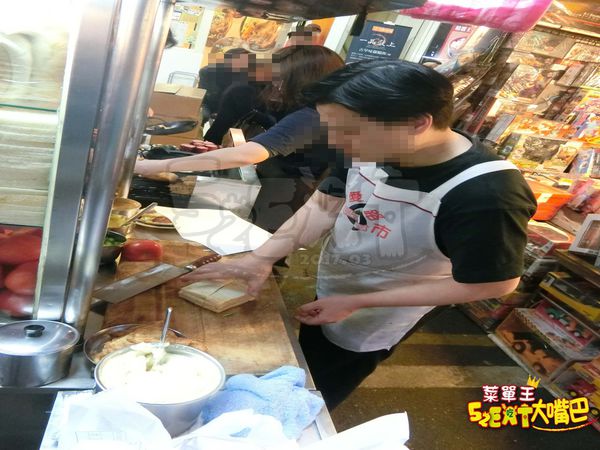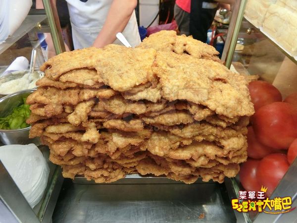 ▲就是這個黃金豬排,一塊一塊的堆疊起來,讓小編越看越心動了,越接近攤子就越興奮,終於要拿到傳說中的碳烤三明治了!