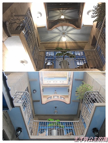 從樓上這個陽台往下拍的樣子~也是好優美!白天我來拍照的時候,裡面的大烏龜還在地面曬太陽呢!