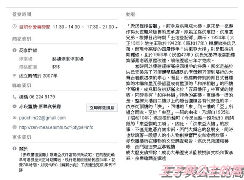 這是我截取粉絲專頁上,關於"赤崁璽樓餐廳"的詳細介紹,真的很不簡單呢~