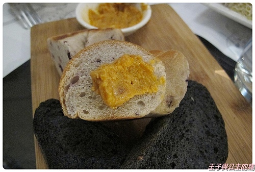 麵包部份,吃起來很鬆軟,尤其是配上那個特別的抹醬~好吃!!