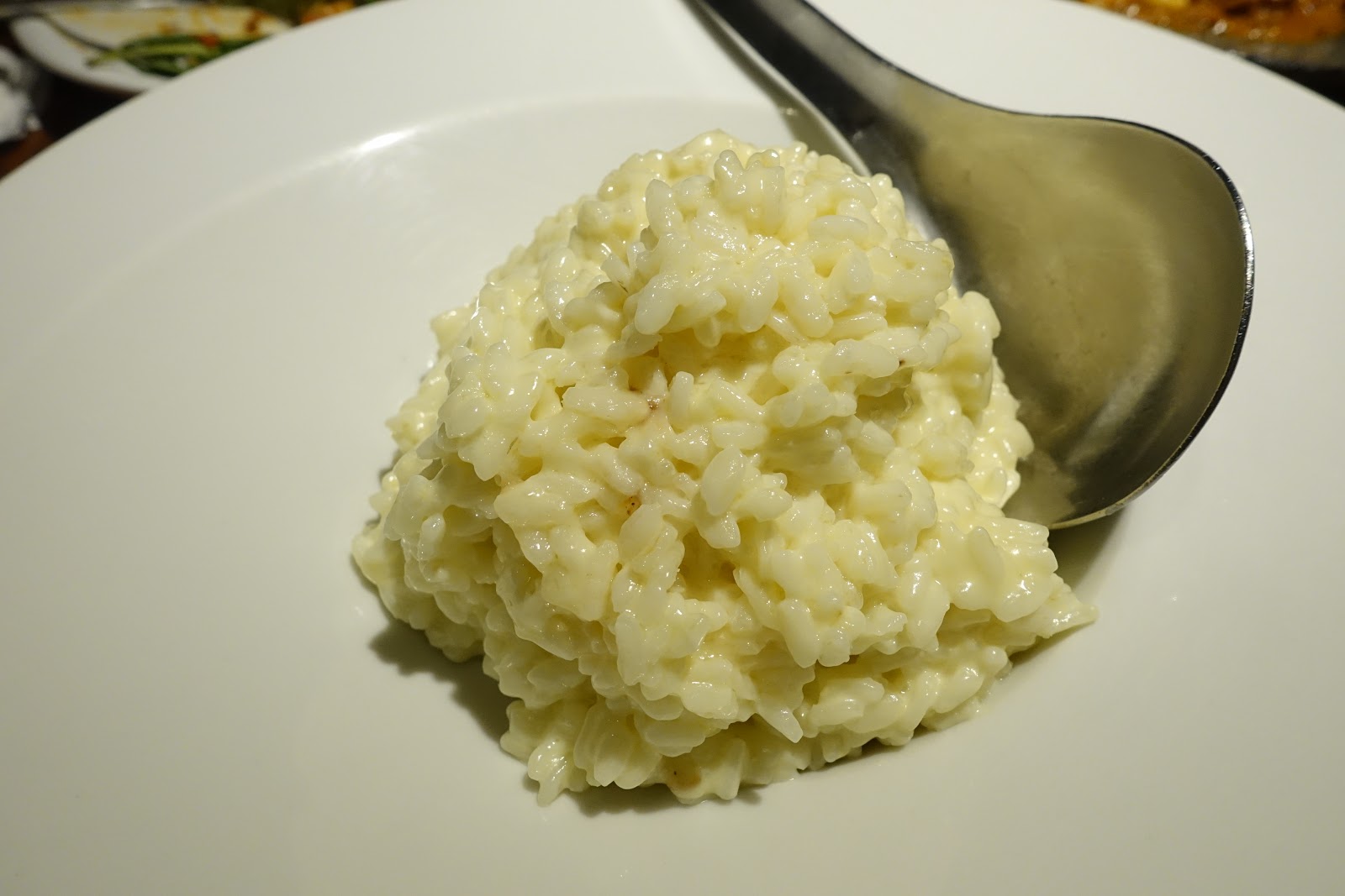 起司均勻地融化在每一粒米飯當中,味道真好!吃得到米飯的Q度、奶香綿密,調味下得很輕,可以品嚐得出米飯和起司的真實滋味,外表看似平凡的燉飯卻讓人回味不已。