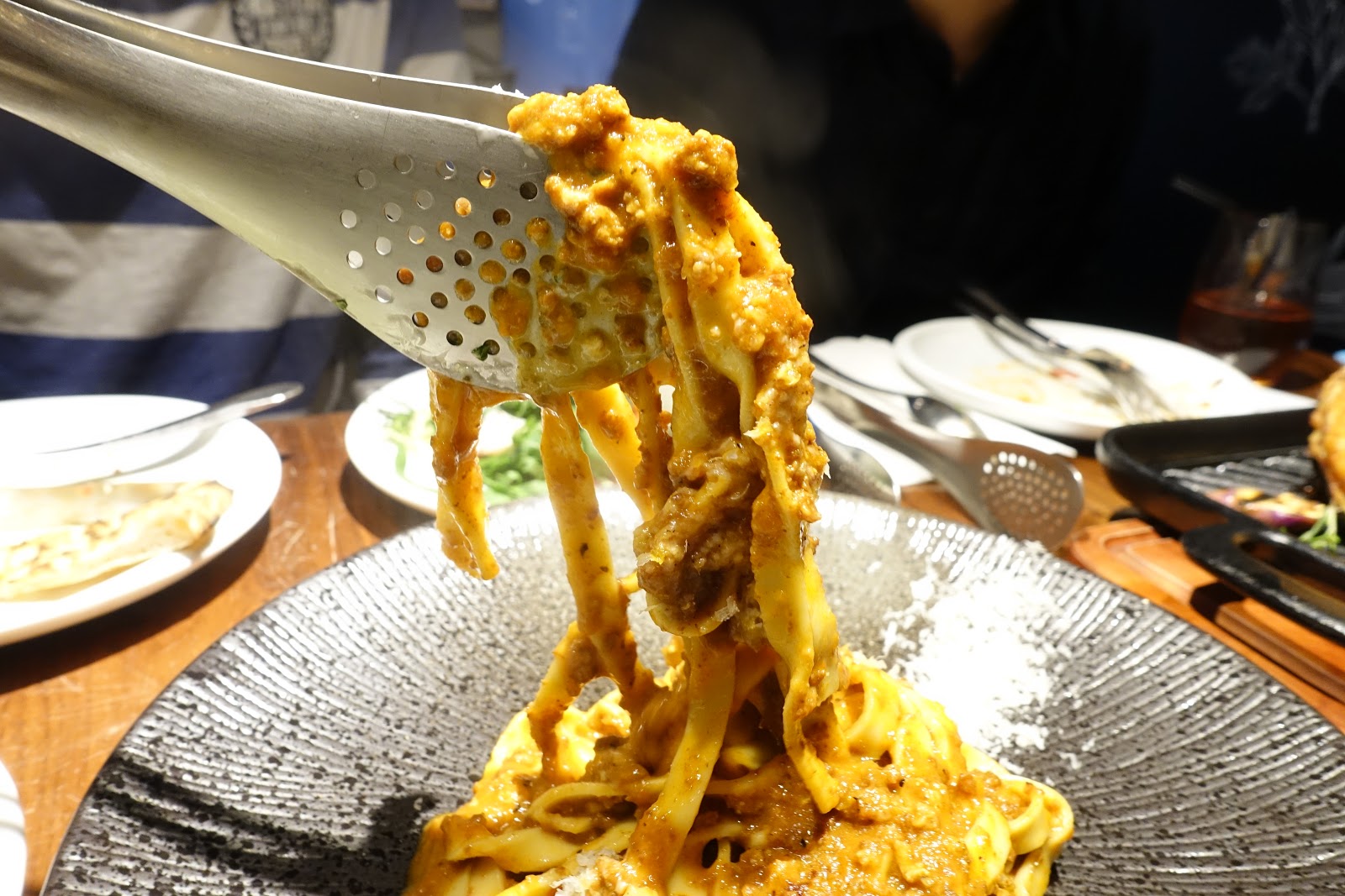 波隆那肉醬手工寬麵,肉醬的份量很夠,滋味完全包裹住煮得稍硬的寬麵,大概是正統義式口感,所以麵條比較不像台灣人的口味。