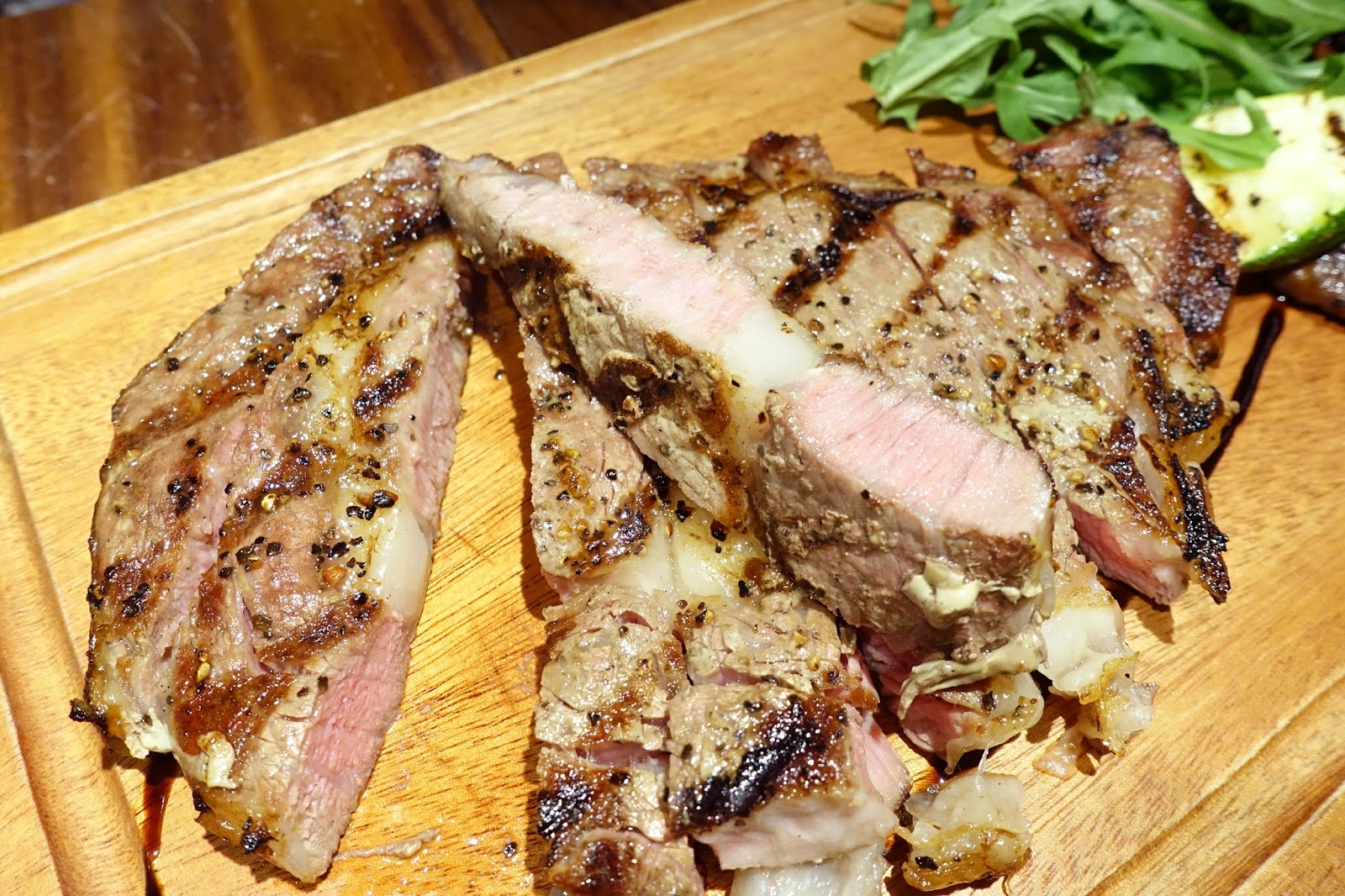 已經幫客人都切好的牛排,粉紅色的斷面非常漂亮,這份牛排適合所有人,即便同伴中有不敢吃太生牛排的人都會樂於享用。