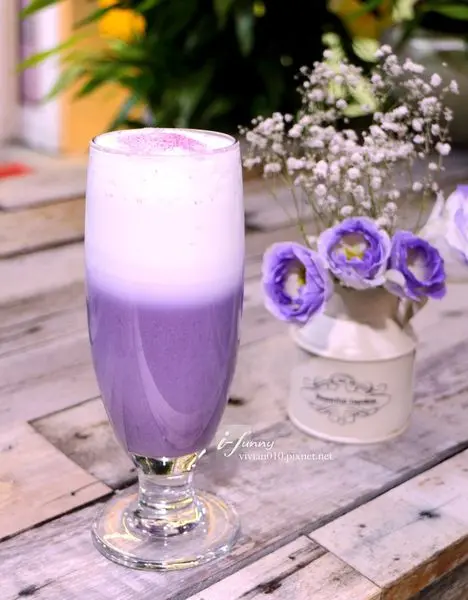基底選用的是不搶味的半糖少冰奶茶(印度紅茶+牛奶),讓人能好好品嘗飲料中加入蝶豆花製成的奶酪滋味。帶著淡藍色澤的切丁奶酪,輕壓就能在嘴裡化開,同時散發著一股淡淡的香草味,原來裡頭還有小心機,加入了香草籽一起調味。既然不小心就點了兩杯都含有蝶豆花的飲品,就順便來介紹一下這很夯的豆科植物,因為花朵富含花青素,將蝶豆花朵泡水會溶出奇幻的藍色。由於蝶豆花泡出來的水本身沒有味道,因此多用來作為天然的食物染料。而藍色的花青素還會隨酸鹼度不同,呈現出不同顏色,花青素在鹼性環境中會呈現藍色、中性呈現紫色、酸性則呈現紅色,就能創造出多種奇幻炫麗的色彩。