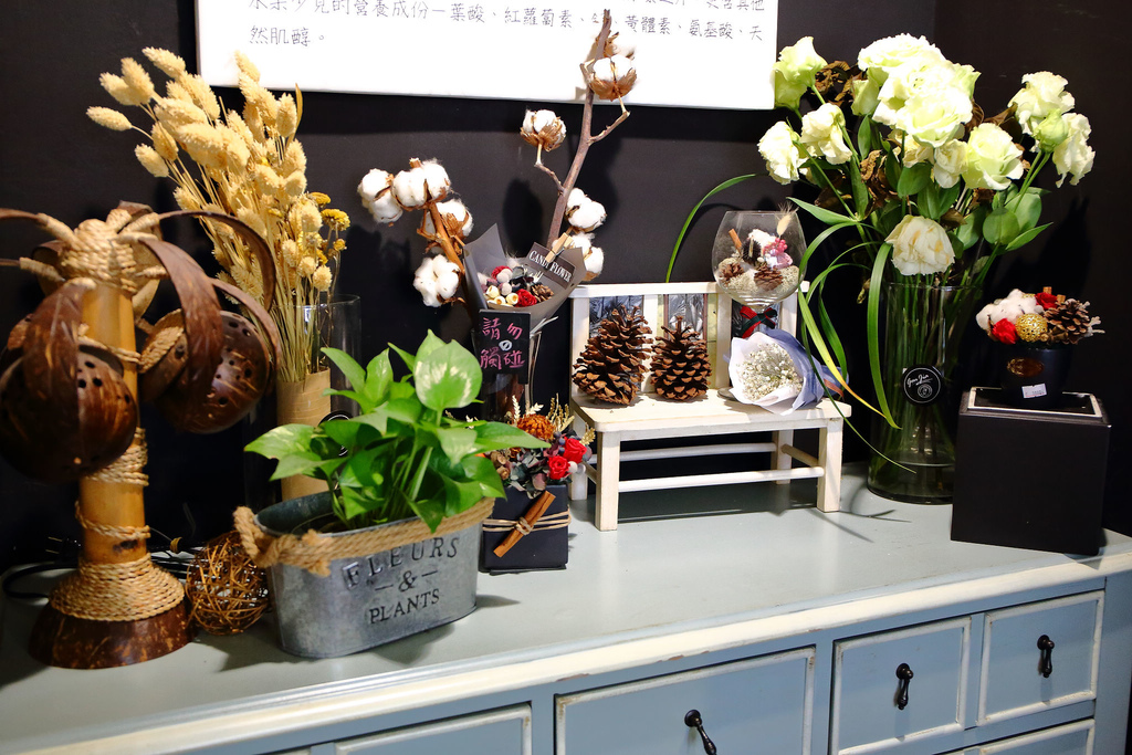 店內的裝潢活潑明亮的,簡單卻朝氣十足,白色的木牆、美美的乾燥花佈置呈現滿滿的日式清新感