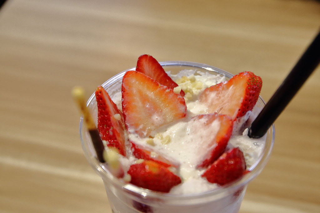新鮮的草莓口感酸甜與鮮奶的濃郁奶香非常地搭,酸酸甜甜的味道,香甜細滑的口感,絕對會飲上癮呀