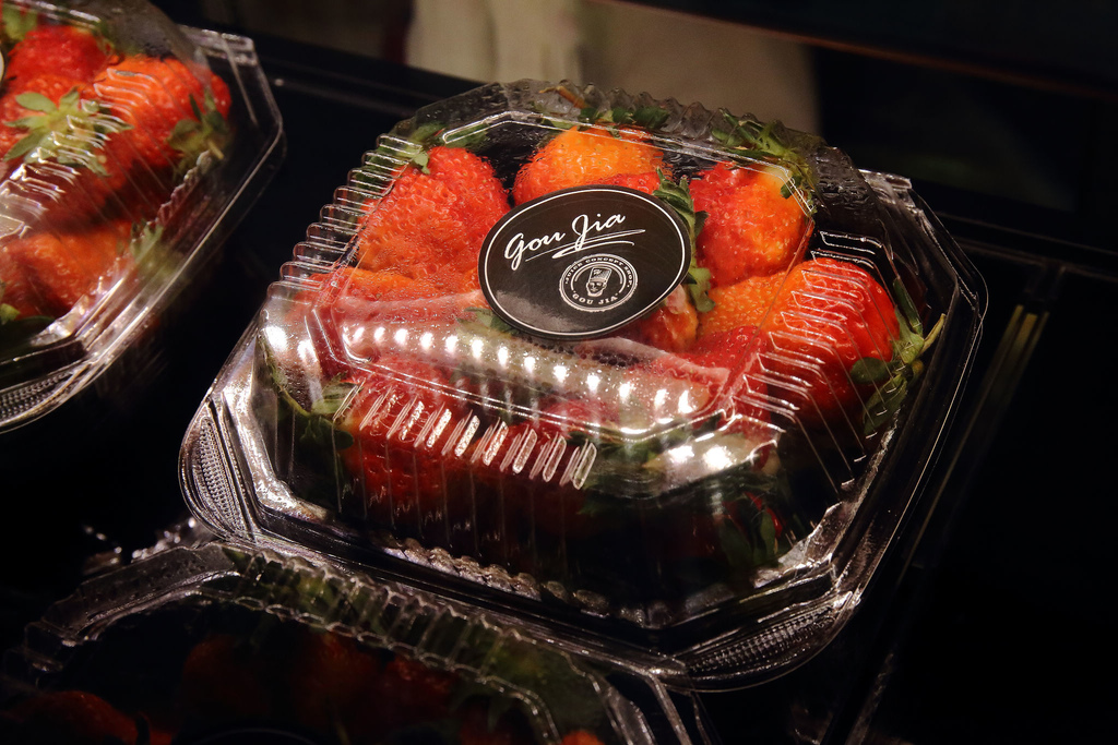 草莓像是精心挑選的,每個都差不多一樣大小,擺得跟花一樣,光看就讓人感到無比幸福