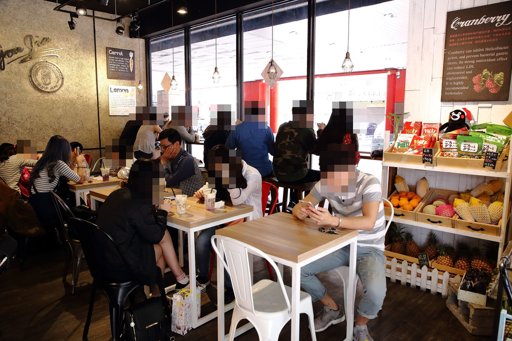 主打新鮮現打天然果昔、果汁,菜單名稱都很有趣,是很有質感可愛的風格小店