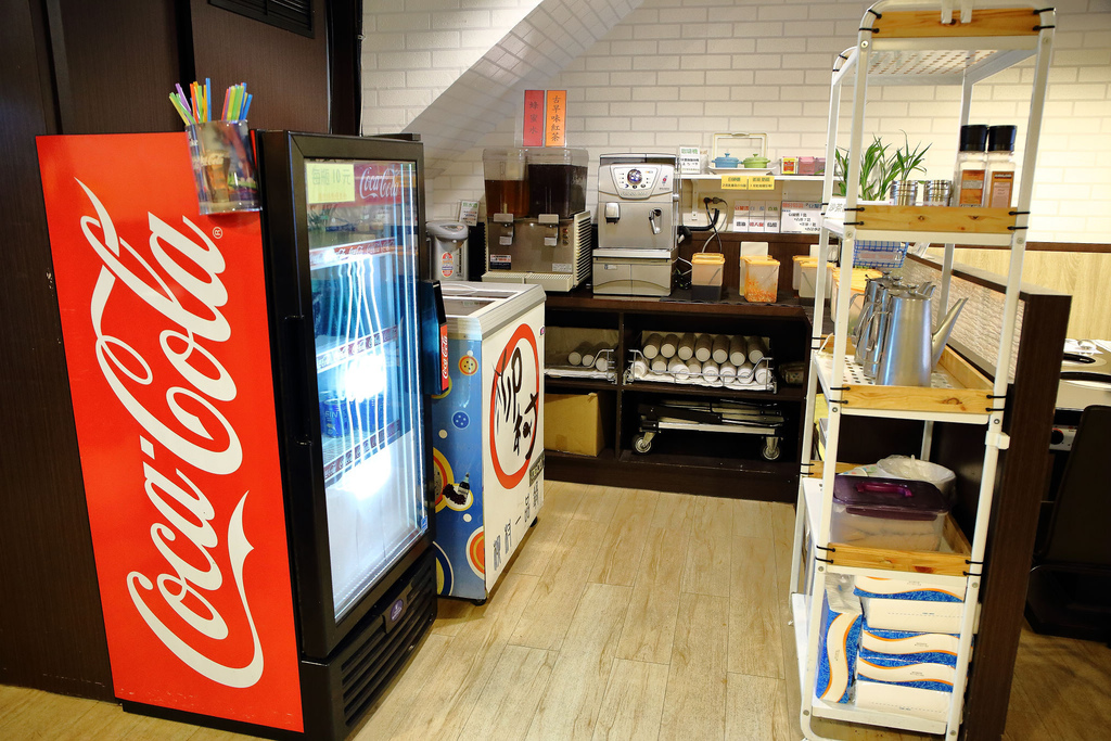 自助式醬料區,有沙茶醬、醬油、白醋、香油、黑醋...等等自助式飲料吧, 古早味紅茶、蜂蜜水