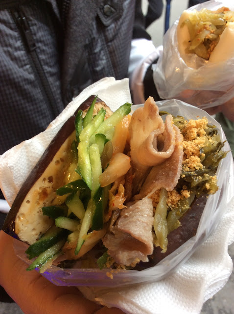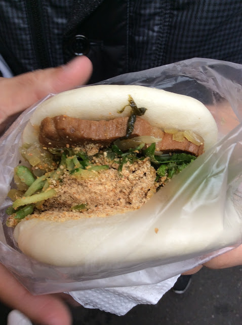 | 因為肚子太餓了 阿偉買了個山豬肉刈包 |