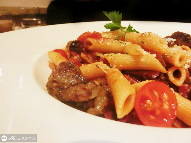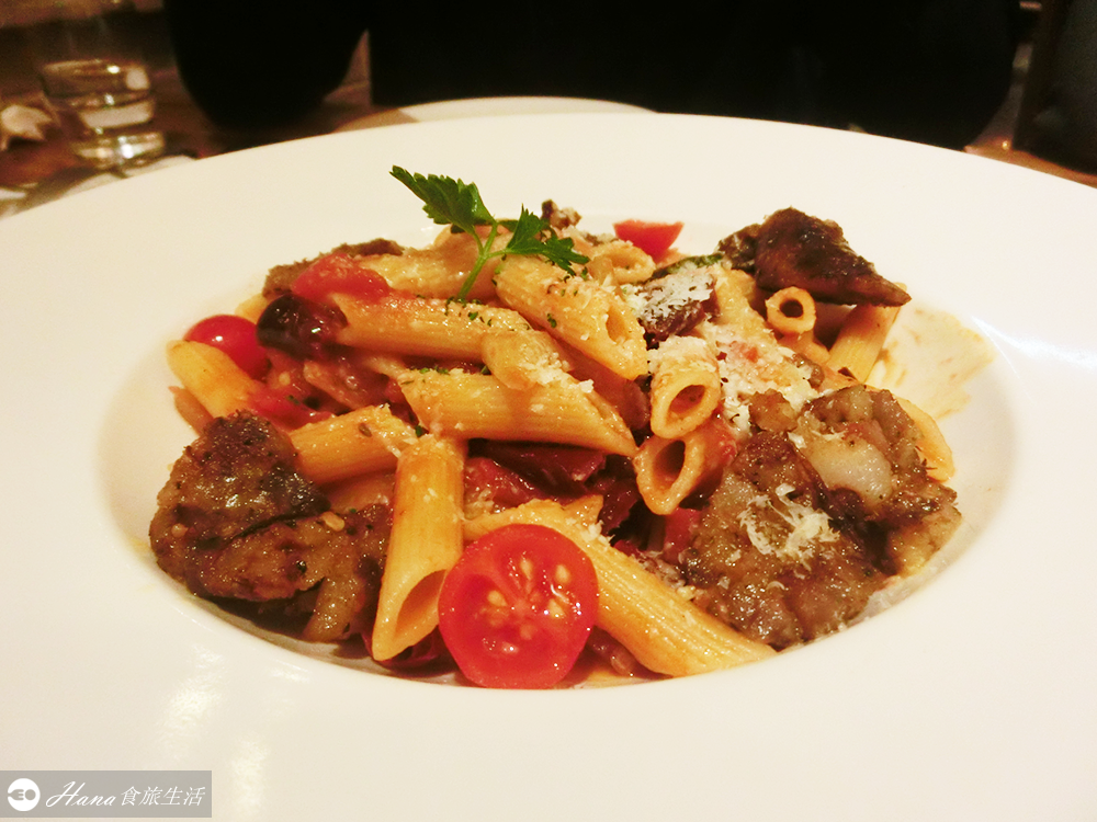 ▲羅馬辣味蕃茄手工香腸筆管麵$220,