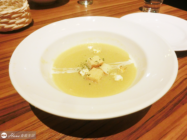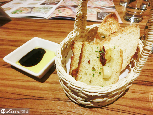 ▲第一次吃到餐前麵包中有加入蕃茄乾和整顆大蒜,