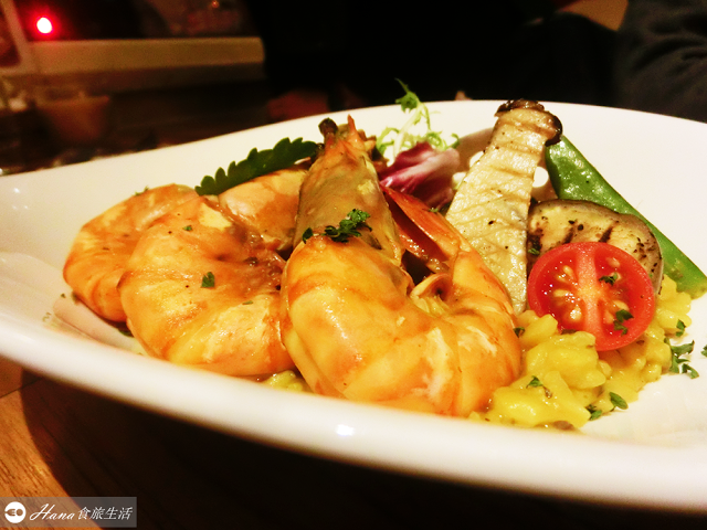 食材有野生草蝦、炙燒蔬菜、南瓜、洋蔥、鮮奶油等,