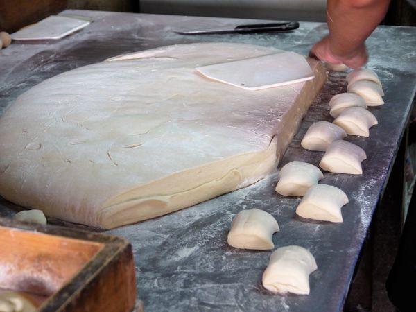 小老闆每日凌晨三點起床開始依當天的溫度、濕度等狀態開始揉製麵糰,再放置任其自然發酵!