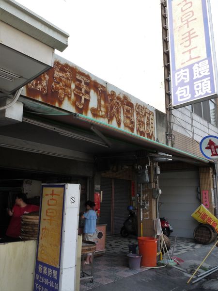 【黃記古早肉包饅頭-仁德店】門口的鐵製招牌,因有些年代故顯的斑駁掉漆~