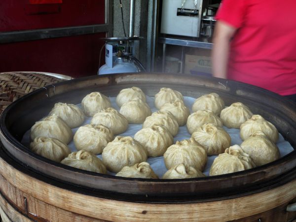 正當編編看著老闆娘快手包肉包起勁時,小老闆娘說包子蒸好啦!要出籠囉\(^o^)/