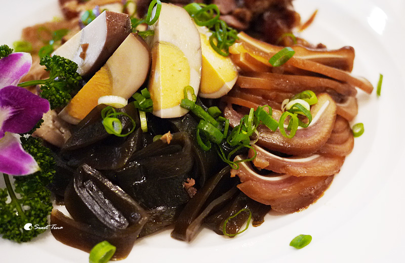 【招牌滷味拼盤-小份】拼盤裡有 :牛腱、牛筋、豬耳朵、豆干、海帶、豆皮、滷蛋,雖是小份的,但是我覺得份量還滿多的呢,吃完這盤都快五分飽了XD~