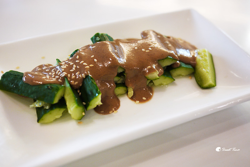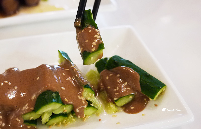 【胡麻小黃瓜】青脆的小黃瓜淋上香濃的胡麻醬,胡麻留香的口感很棒呢,也很受瑋兒的喜歡哦!