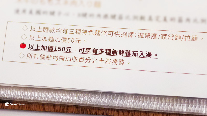 牛肉麵有三種麵條可選擇,也可以選擇加入新鮮蕃茄,Tina還滿推薦天下三絕的蕃茄湯,料好實在且多層次呢。