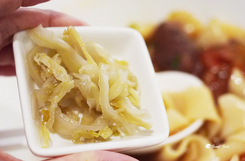 天下三絕也有提供可續的酸菜,但Tina沒有加入一同食用,因為湯頭已經夠鮮美了,直接品嚐就很棒,不過這兒也有一項很貼心的服務,就是湯頭的鹹度都是可以再調整的,調整出適合客人的味呢!