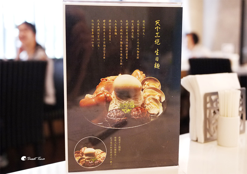 天下三絕還有一個特別的地方,就是他們有生日專屬的「生日麵」,這可是只送不賣,用餐過的客人只要有留下資料,生日當天再來食用的話,就有這道專屬的生日麵呢,看起來超豐盛的啊~