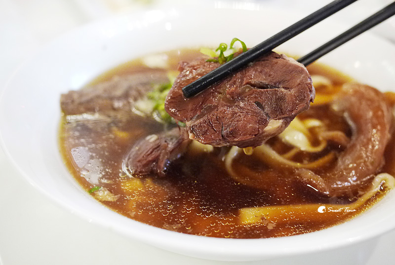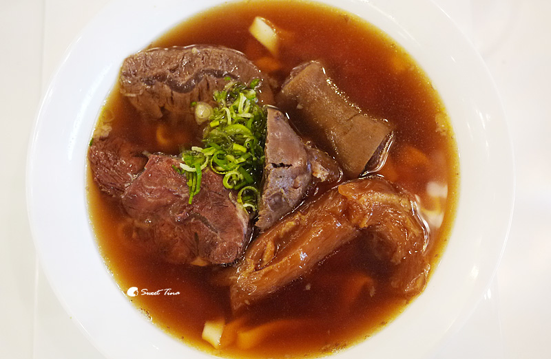 【天下三絕牛肉麵】將牛腱、腱心肉、牛尾、牛筋加入一碗麵中,可以吃到四種不同部位、不同口感的綜合牛肉麵。