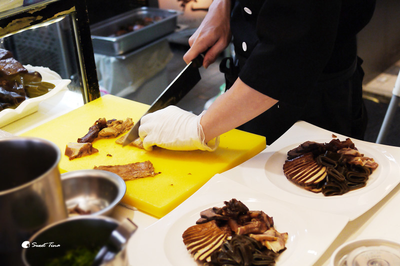 廚房是屬半開放式,一旁還有廚師現切滷味,廚房環境非常乾淨呢!
