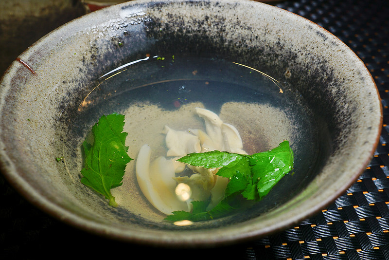 溫物,日本海鰻,青柚與南高梅煮成的梅醬,搭配日本水菜,高湯好很棒帶出整個風味, 梅醬鹹中帶酸把整個味道完全帶出