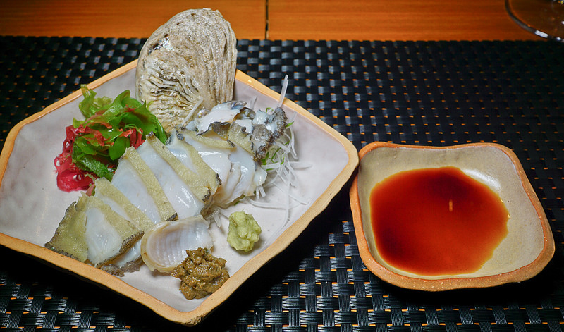 南非小白鮑,口感較緊實較q更多點咬勁, 師傅特別用高溫烤一分熟讓它更軟一點,內臟用味噌與胡麻調味,吃來有點像豆腐乳