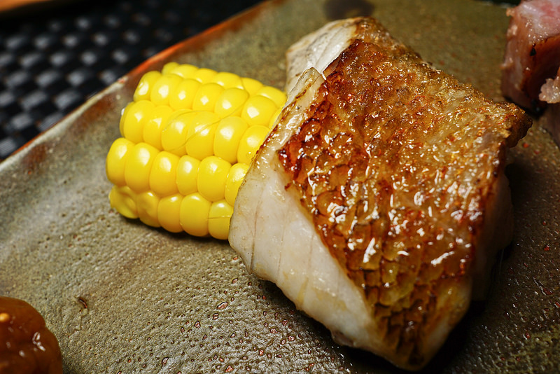 大溪野生紅喉鹽烤,日本玉米,魚烤的果然好, 吃魚還是要走日式料理店會安心點不太會出錯