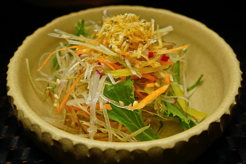 配菜已擺在盤上, 這可不是穿的木屐(想起某篇惡意誤導日料的影片)