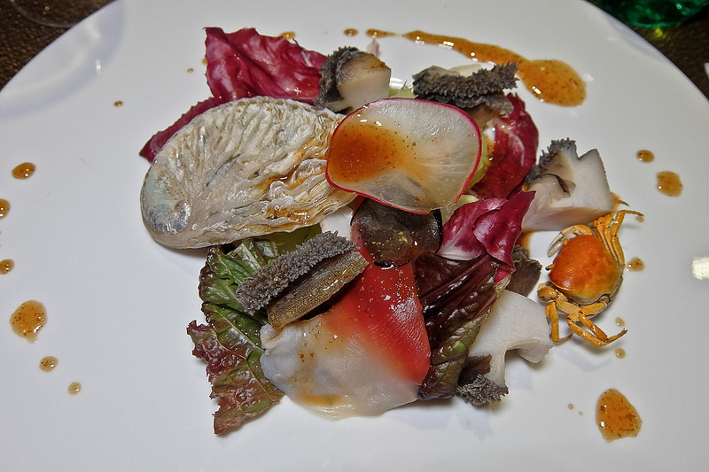 這是澤蟹, 完全炸酥, 不過我和友人都沒吃過, 就想半天還是咬下去, 殼的感覺還是比較重, 會有點碎殼嵌到牙齒的感覺