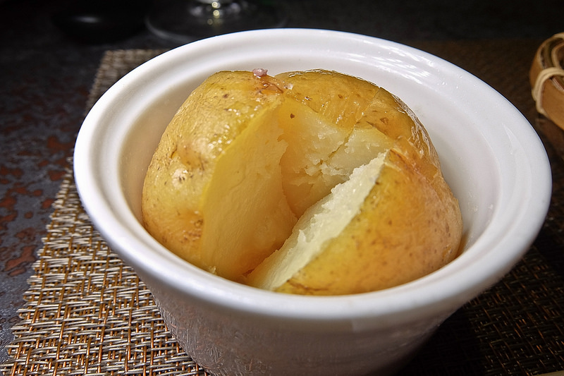烤好後換一個新盤子上桌, 小小覺得缺憾之處是這是一般的瓷盤, 而且應該是甜點用的