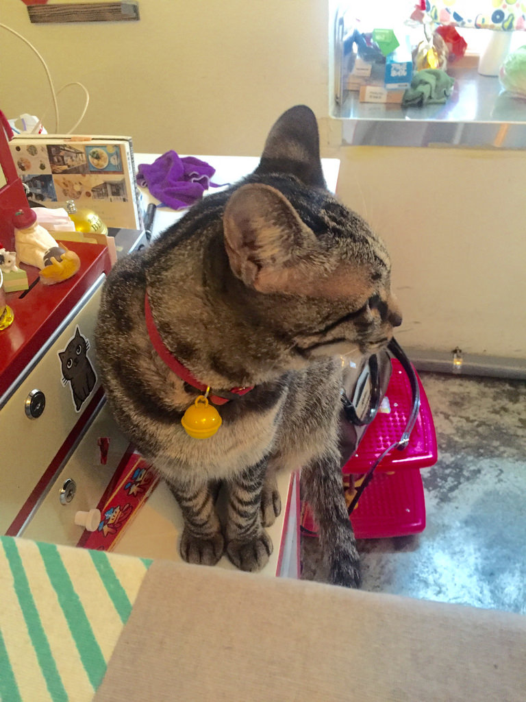 要離開時剛好碰到老皮在吃飯~本來以為是另一隻店貓弟寶結果是弟寶的好兄弟老皮阿,