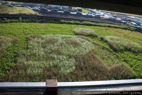 館外種植了許多藺草及火炎山赤松,與一旁的稻田彩繪構成漂亮的風景,景觀會隨著四季變化