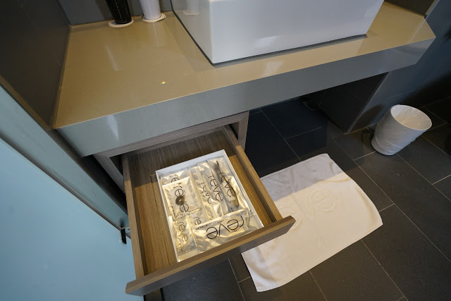 牙刷等備品都在抽屜裡,品項齊全。