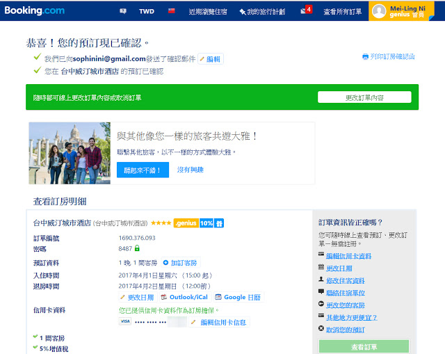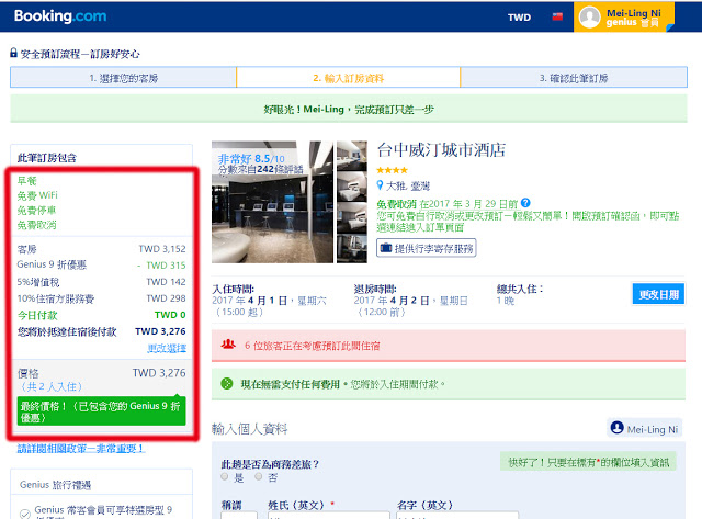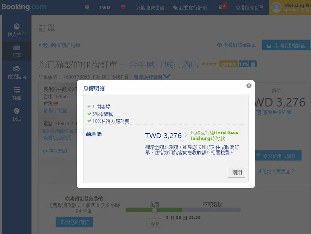 由於我是Booking的Genius會員,所以這次訂房已經享有9折優惠!