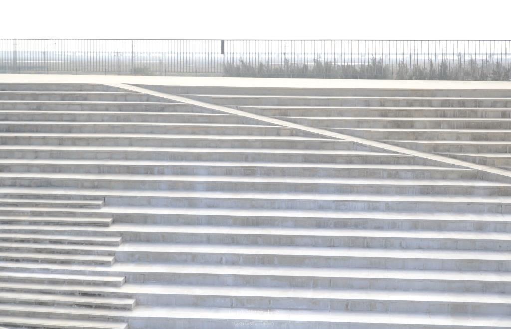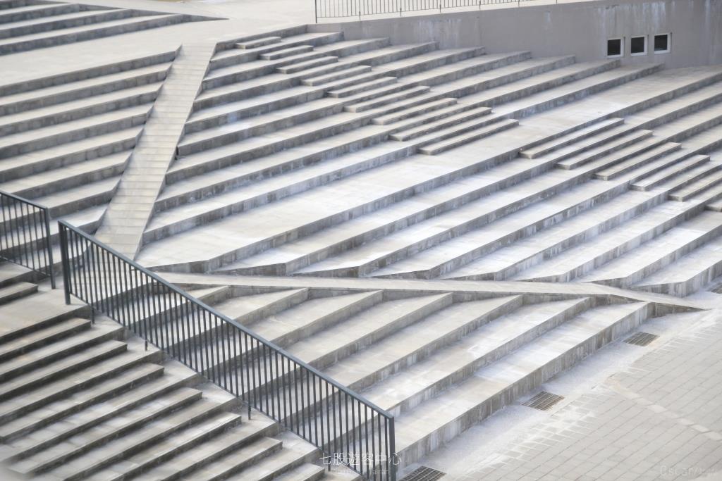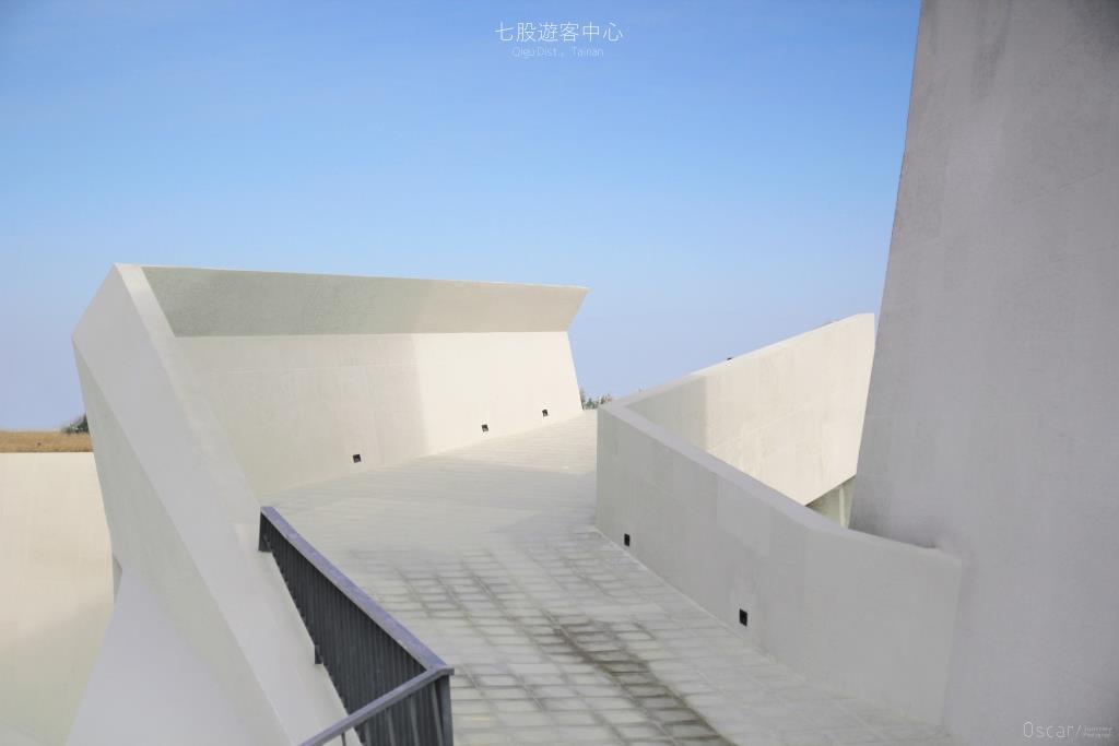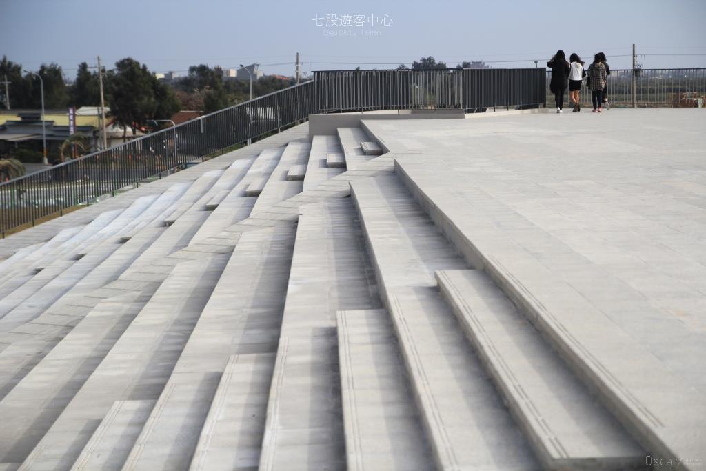 七股遊客中心的戶外空間 讓許多階梯爬上了建築斜面