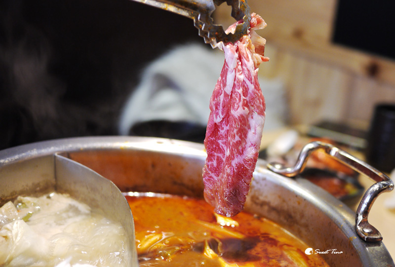 而且每桌都會提供二組的夾子及杓子,將白鍋與紅的器具做區隔呢,不過最後顧吃還是都不管了,拿起來就夾了,哈哈~