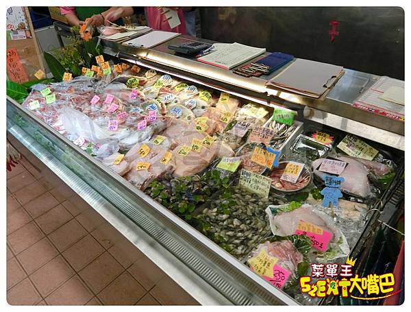 ▲這一區是冷凍的區塊,好的是:都有很明顯的「標價」在上面,不怕會被敲詐!以前在別的餐廳就曾經被敲過一次,點一條「清蒸吳郭魚」是「秤重量」的,結帳時竟發現要價700~800元左右,差點走不出店家,很想罵髒話!而這家有「標價」就可以很放心的吃了!