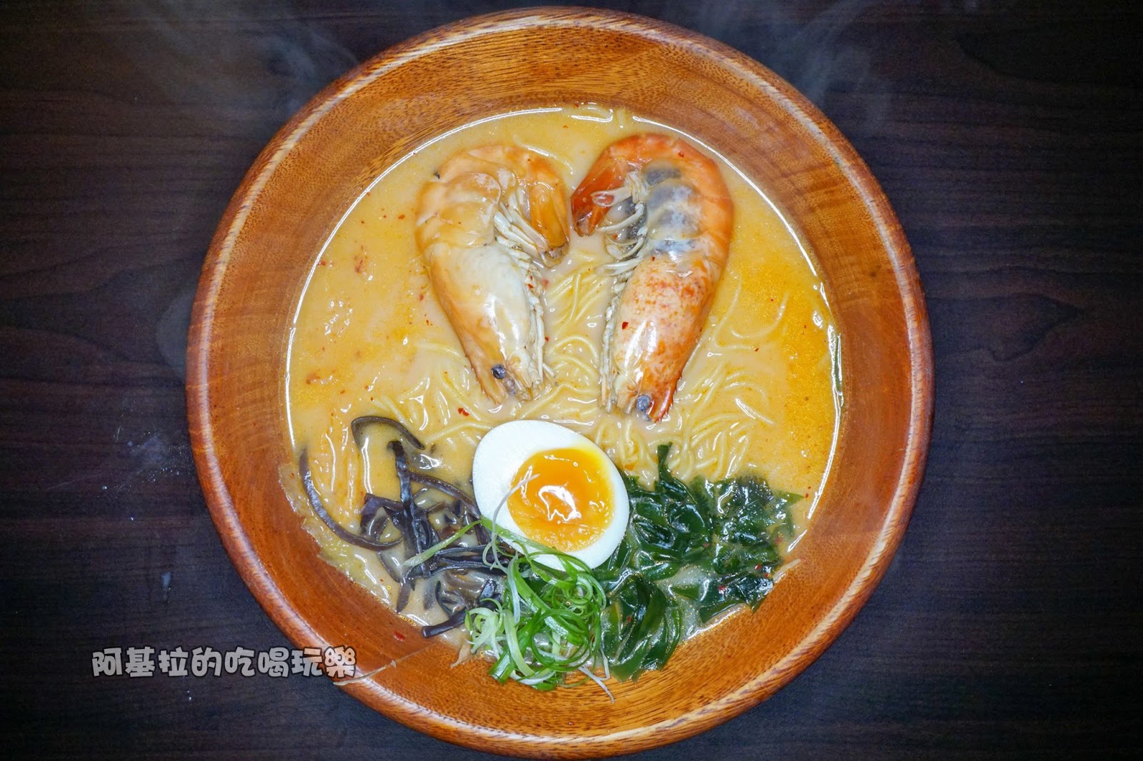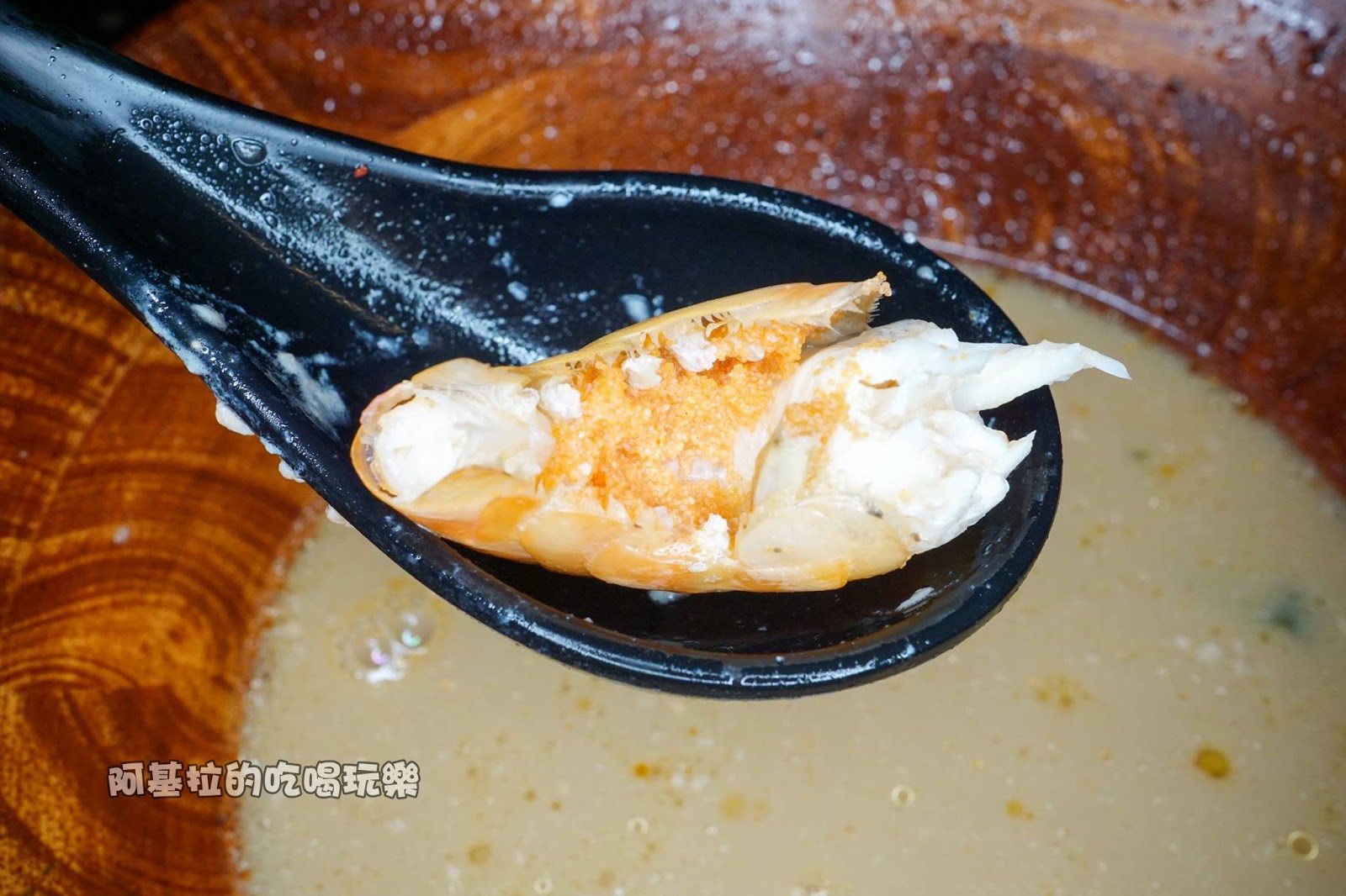 採用新鮮的泰國蝦,肉質非常有彈性、味道鮮甜味美,一度有吃到龍蝦的錯覺,另外還有好吃的蝦膏和蝦卵(依季節而定,並非每次都有),配合酸辣的豚骨湯頭相當對味,這是店家的隱藏版料理,不定時供應,每次只有10碗,所以不是想吃就吃得到的喔。