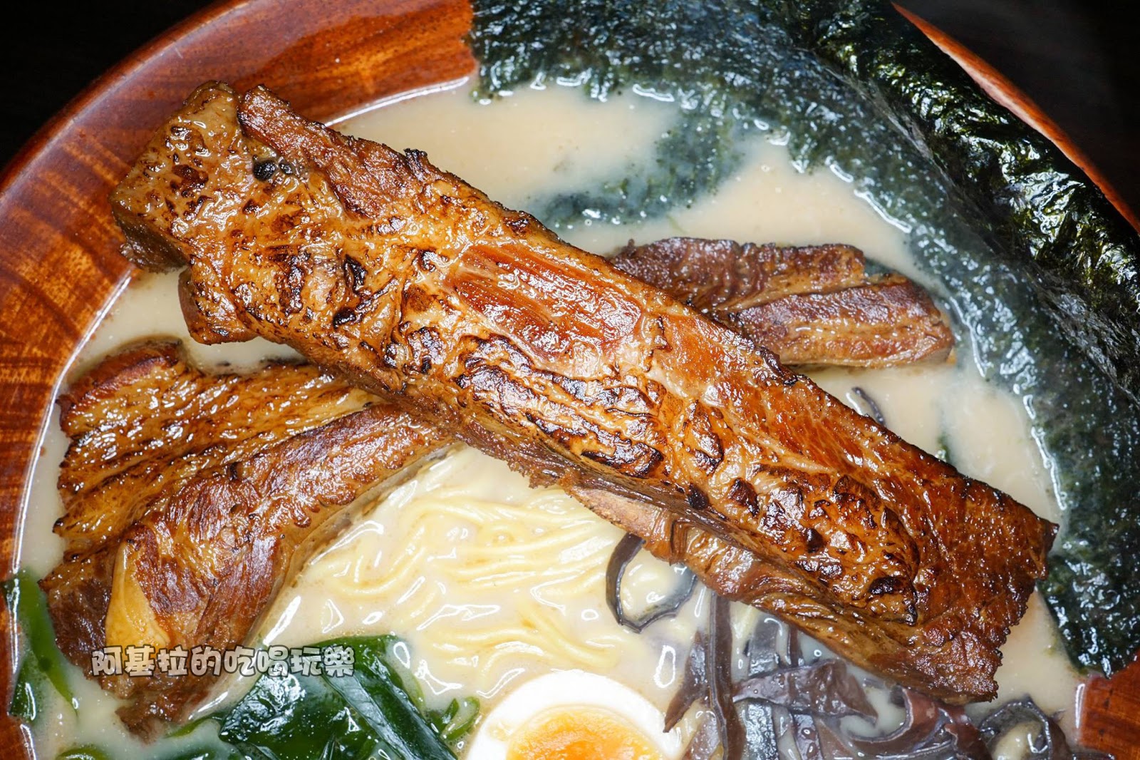營業時間到凌晨的深夜美食,口味出眾的日式屋台拉麵,獨家滷汁加上大骨熬製的豚骨湯頭,味道濃郁、香醇、順口、不重鹹,搭配現場炙燒的叉燒、豬肋排、牛小排、羊肩排,以及櫻桃鴨和泰國蝦,口感令人嘖嘖稱讚。