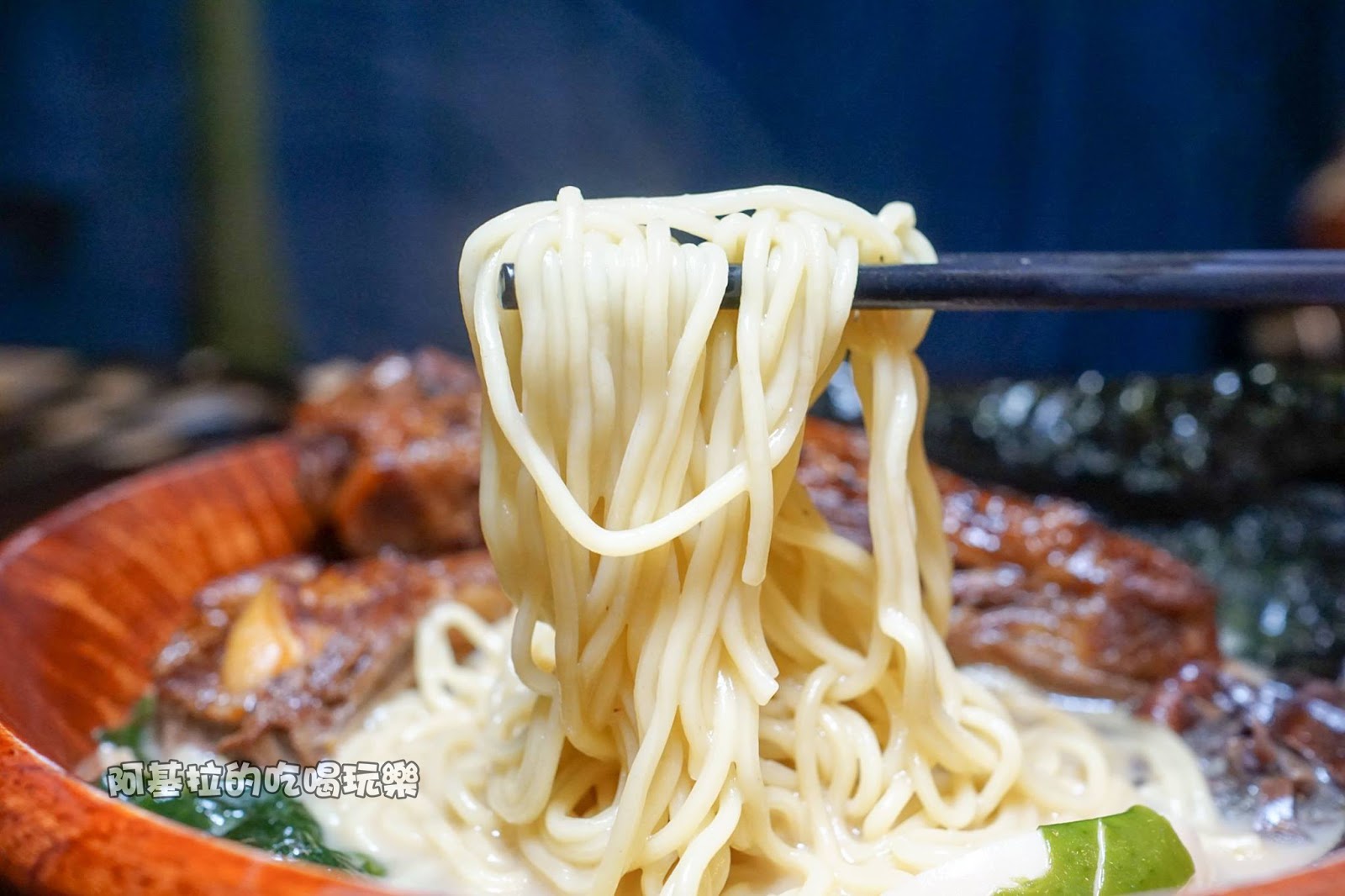 麵條由日本廠商製造,口感富有彈性又能吸附湯汁,一口氣吸進嘴裡咀嚼,會聞到麵條和湯頭的香味,而且份量不少,整碗麵吃很有飽足感。