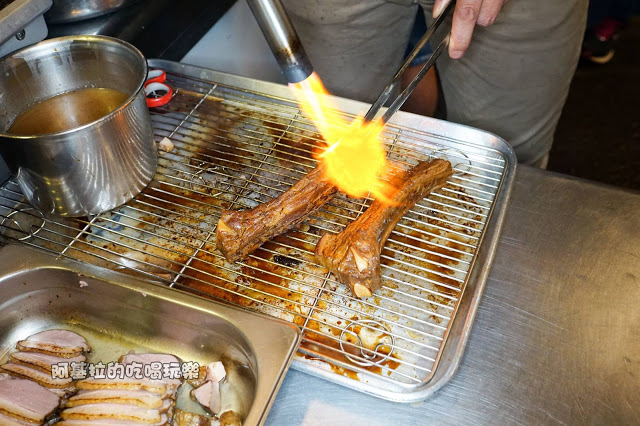 這家拉麵的另一個特色就是現場使用噴槍的烈火,將滷好的叉燒或助排進行炙燒,把肉裡面的油脂逼出來,讓香味獲得提升,看到這個畫面,我的食慾也跟著上來了。