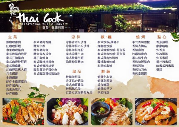 餐點的部分Thai cook 泰酷.泰國料理有許多選擇,泰式料理中的經典料理,