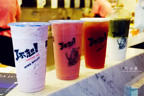 店面販售著五款飲品,包含三種茶類飲和一款草莓牛奶以及奇異果冰沙,未來還會再添加麵包類的新產品。