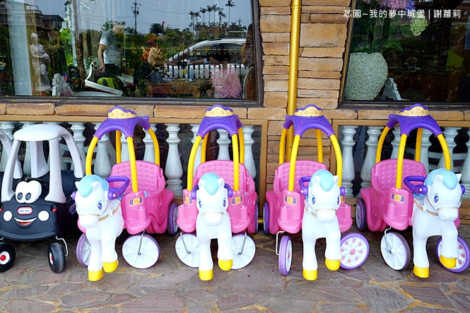 芯園主打親子住宿,在這裡你能看到不少屬於小朋友的服務設施,每個房型皆提供室內溜滑梯,小孩專屬的床舖,除了照片看到這個卡通造型拉車之外,還有搖控式的電動古董車可以乘坐呢!